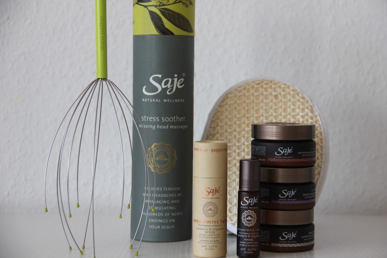 一番上にある写真の左に映る、緑の泡だて器のようなものは、頭にぐっと押し込むと、頭皮をほぐし、マッサージ効果のある優れもの。頭痛がある人や、リラックスしたい人に。自分でももちろんできますが、誰かにしてもらうと、またさらに心地いいので、お願いしてみてくださいね。