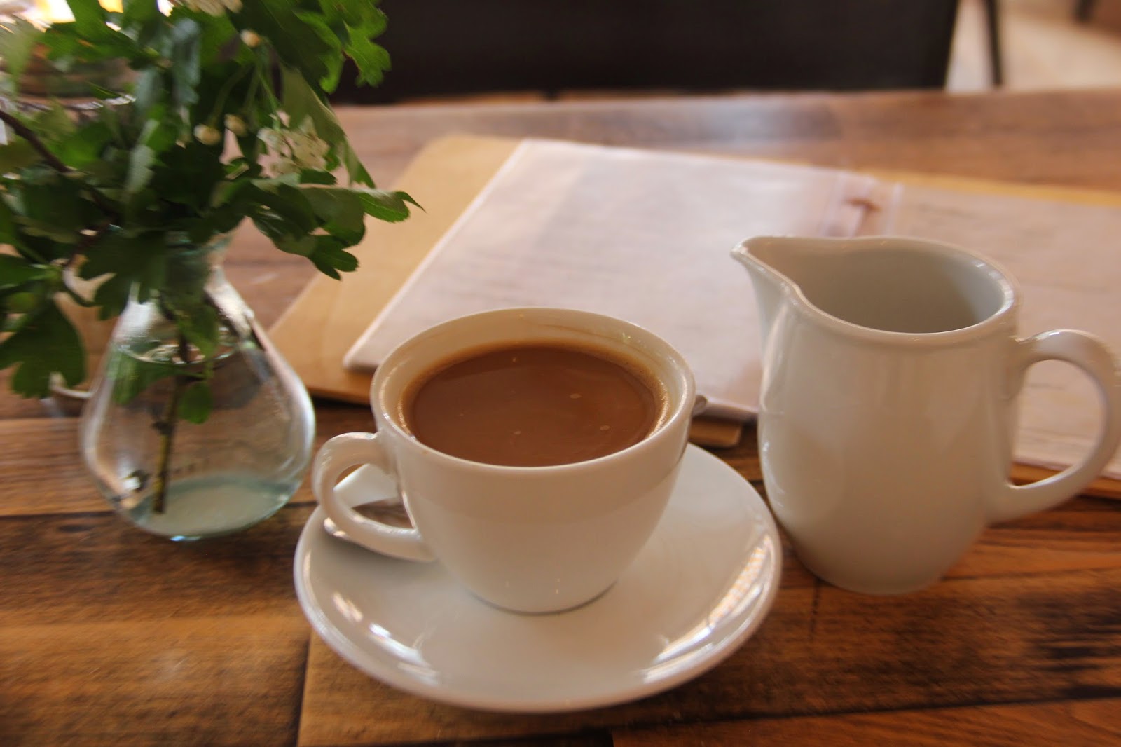 新鮮なミルクたっぷりのコーヒーとパン、季節のケーキもいいし、