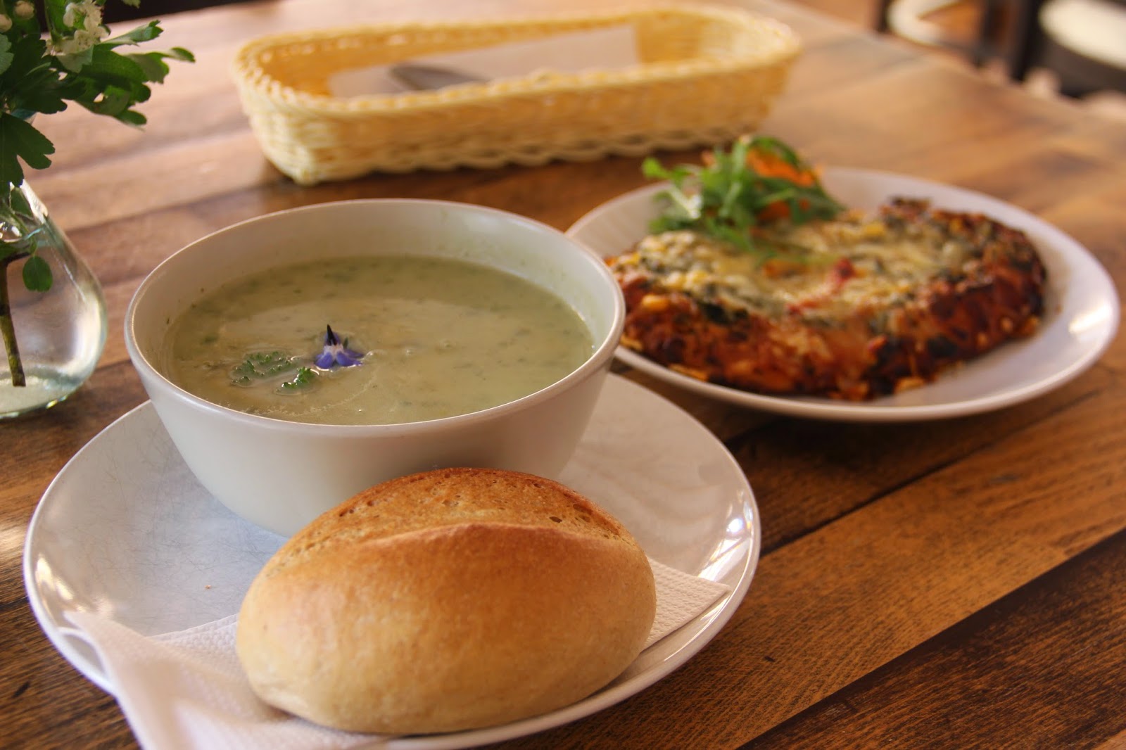 ハーブたっぷりのスープに、このカフェで人気があるというKatofelsalad(ジャガイモのサラダ)